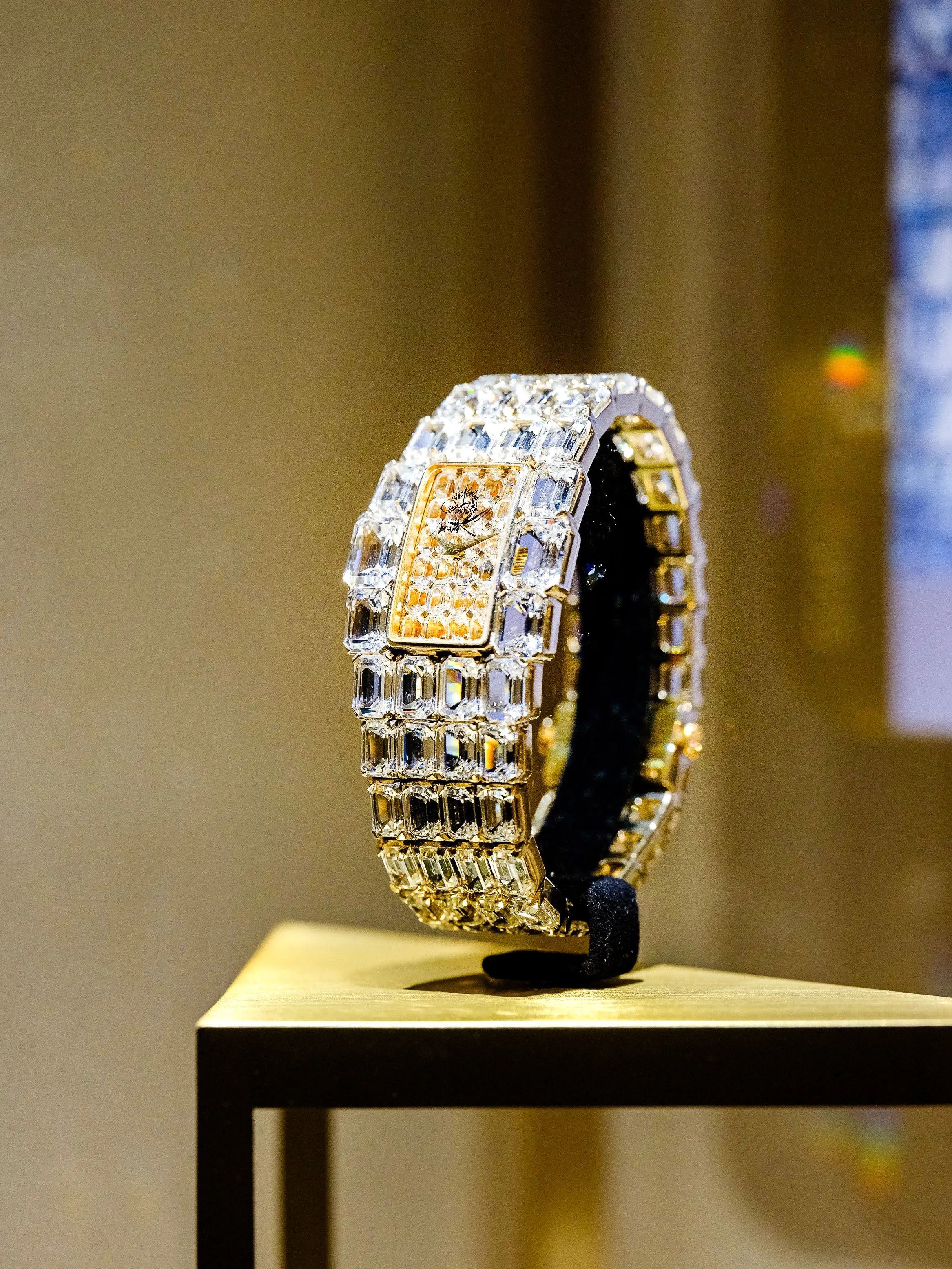 118. That’s the number of emerald-cut diamonds on this watch. Representing the gem-setting section of the exhibition, we have a VERY precious watch. Named the Kallista, this gem (pun intended) of a watch took Vacheron artisans 6000 hours to cut, polish, set and complete. The selection process for the diamonds alone took five years.