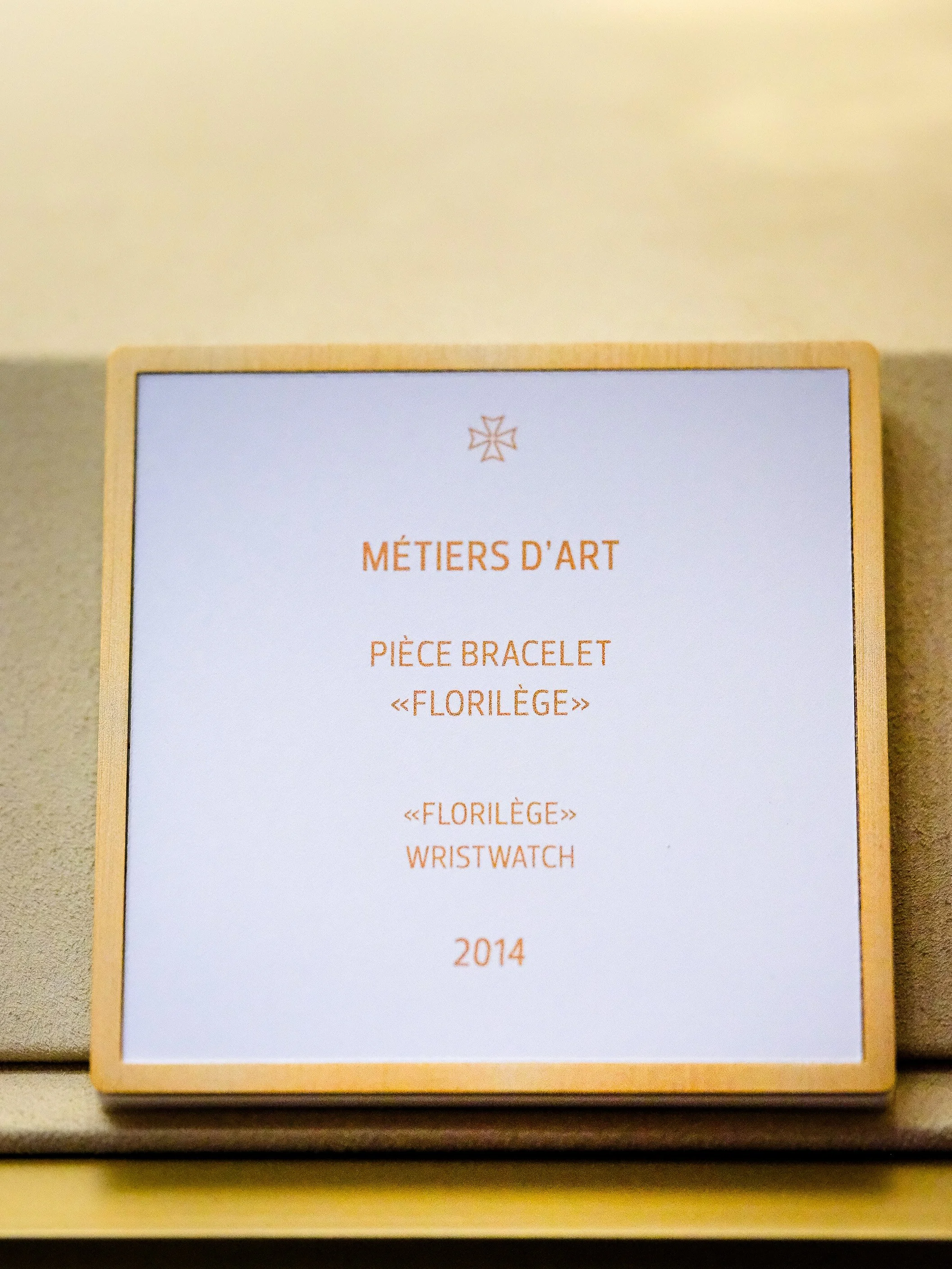 The sole watch in this display case is a special one. It is part of what Vacheron calls ‘Métiers d’Art Florilège’ series. The dial features a combination of two main decorative techniques - guilloche and cloisonne enamelling. To top it off, 60 baguette diamonds are carefully set around the bezel.